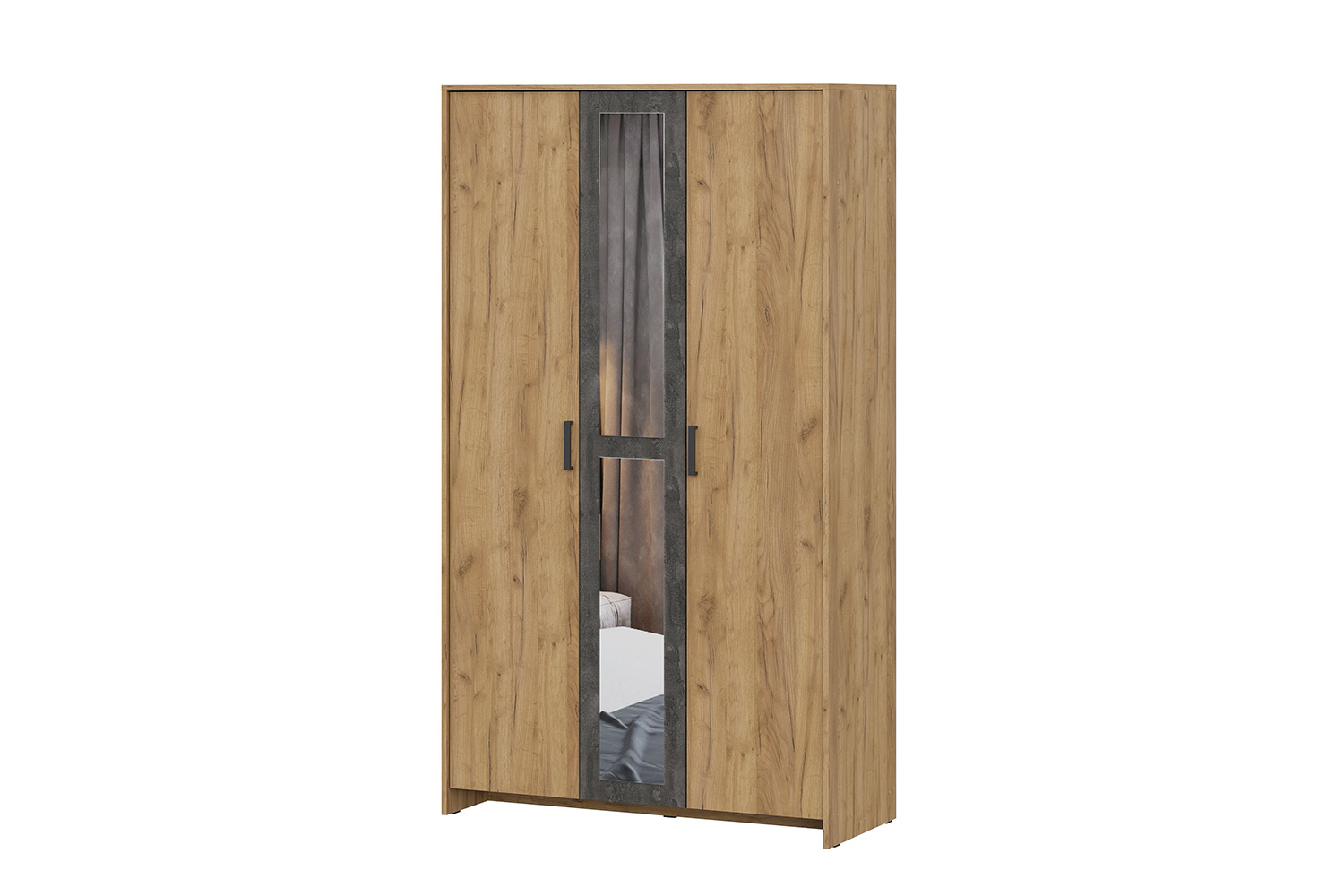 دولاب Bari ثلاث ضلف مفصلات+ وحدة تخزين علوية – تقسيمة عملية تشمل تعليق ورفوف – مقاس 150×50×220 سم – خشب كونتر طبيعي – بضمان 10 سنوات.