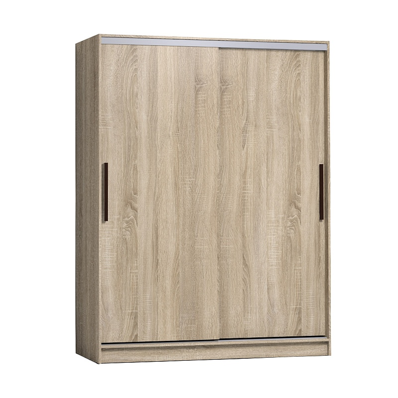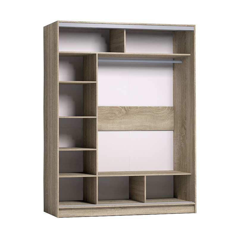 دولاب Lecco ضلفتين بأبواب جرّار، تقسيمة عملية تشمل رفوف وتعليق – مقاس 160×60×210 سم، خشب كونتر طبيعي، بضمان 10 سنوات.