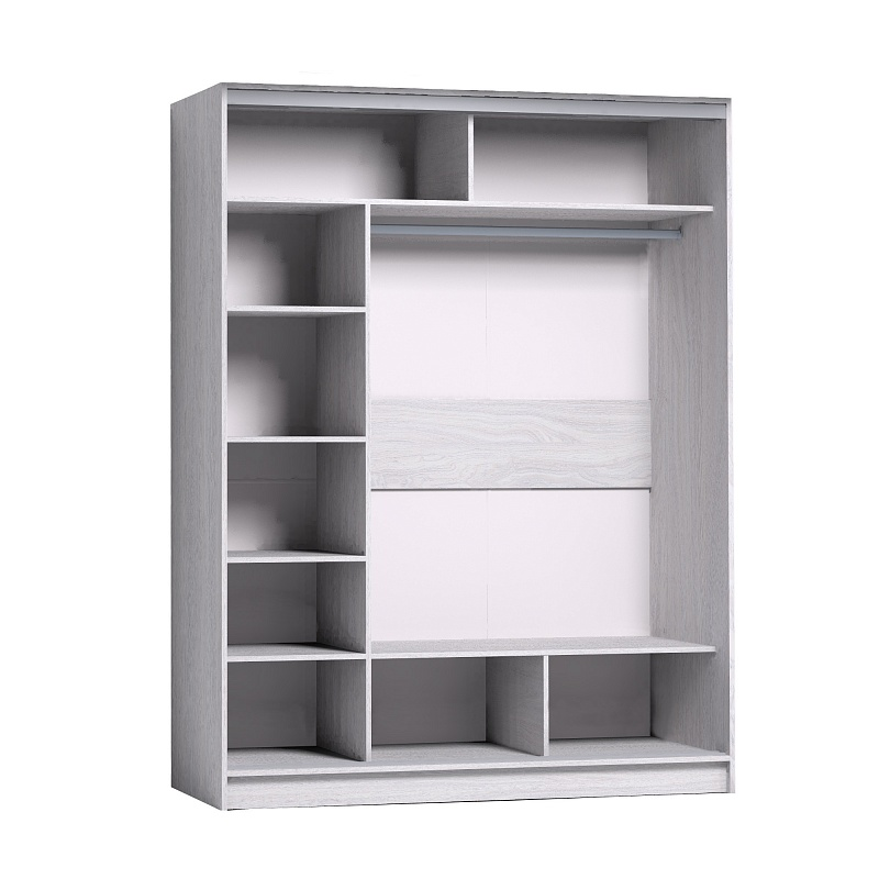 دولاب Lecco ضلفتين بأبواب جرّار، تقسيمة عملية تشمل رفوف وتعليق – مقاس 160×60×210 سم، خشب كونتر طبيعي، بضمان 10 سنوات.