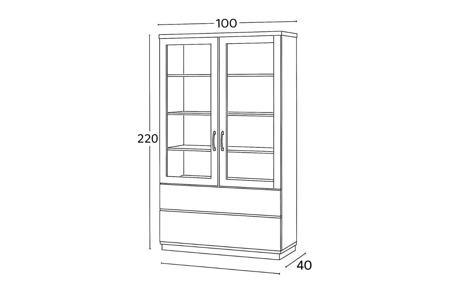 نيش Elvas بتصميم عصري يجمع بين العرض الأنيق والتخزين العملي، مثالي لغرف السفرة أو المعيشة. الجزء العلوي مزود ببابين زجاج يكشفان عن 3 رفوف داخلية، بينما الجزء السفلي يحتوي على درجين مغلقين لتخزين الأدوات غير المعروضة. التناسق بين اللون الفاتح والخشب الطبيعي الداخلي يضيف لمسة دفء وأناقة للمساحة.