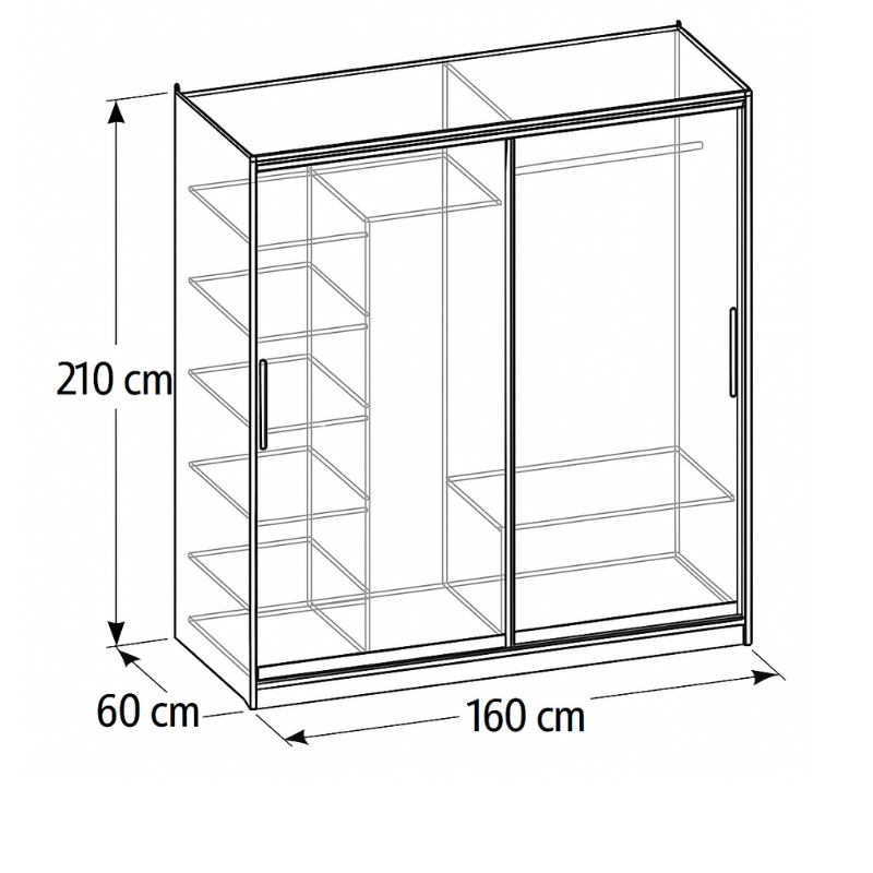 دولاب Lecco ضلفتين بأبواب جرّار، تقسيمة عملية تشمل رفوف وتعليق – مقاس 160×60×210 سم، خشب كونتر طبيعي، بضمان 10 سنوات. السعر الأصلي هو: 9.300,00 EGP.7.500,00 EGPالسعر الحالي هو: 7.500,00 EGP. -
